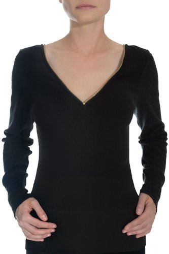 - Deep V-neck on front and back Wide rib waistband and cuffs